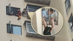 امرأة شجاعة تنقذ طفلة سقطت من ارتفاع شاهق عبر التمسك بها