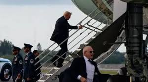 أظهر مقطع فيديو متداول الرئيس الأميركي دونالد ترمب يستخدم سلمًا صغيرًا للصعود سريعًا إلى الطائرة الرئاسية مساء أمس الأحد.