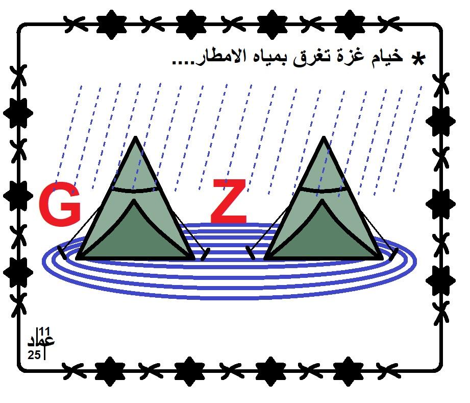 خيام غزة تغرق بمياه الامطار كاريكاتير عماد عواد