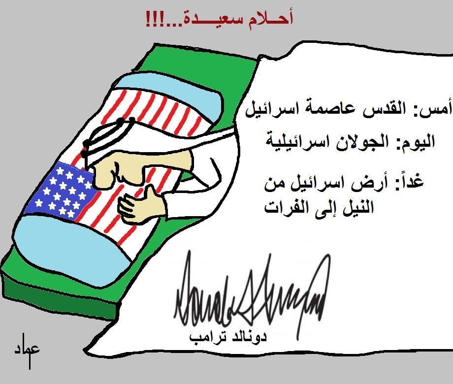 ترامب وأحلام عربية سعيدة كاريكاتير عماد عواد