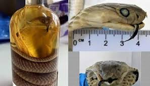 تمكّن مفتشو الجمارك في مطار بارانول الروسي من ضبط زجاجة نبيذ بداخلها أفعى كوبرا محنّطة بحوزة سيدة قادمة من فيتنام، حيث كانت تحاول إدخالها إلى البلاد دون تصريح.