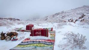 أجواء شتوية قاسية في تبوك والثلوج تكسو قمم جبل اللوز