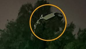 سيارة تطير وتستقر فوق شجرة.. حقيقة حادث غريب يثير الجدل في الكويت
