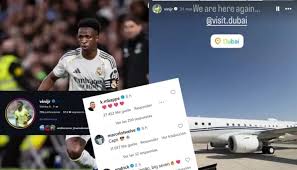 وتابع: “بعد ساعات قليلة فقط، غادر فينيسيوس العاصمة مدريد متجهًا إلى دبي، الأمر الذي فتح باب التأويلات على مصراعيه، خاصة مع تصاعد الحديث عن توتر العلاقة بين اللاعب والجماهير، إلا أن مصادر داخل النادي أوضحت أن السفر جاء ضمن اتفاقية رسمية تجمع ريال مدريد بهيئة السياحة في دبي، تهدف إلى تصوير مواد إعلانية ترويجية، في إطار شراكة تسويقية مستمرة سبق أن شارك فيها عدد من لاعبي الفريق”.