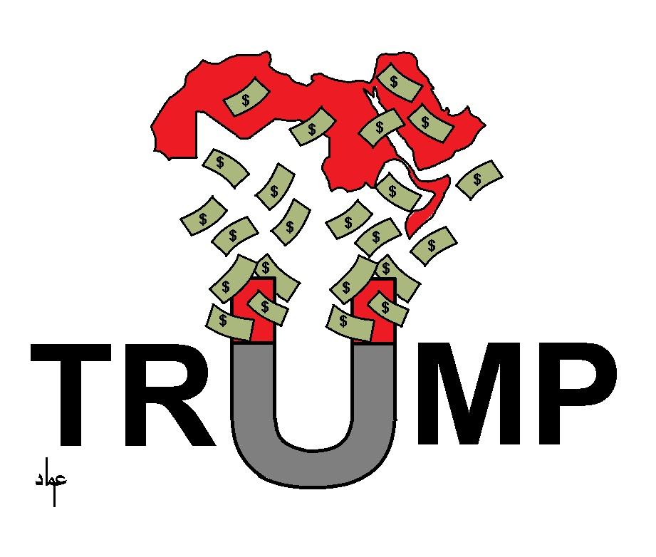 ترامب مغناطيس الاموال كاريكاتير عماد عواد